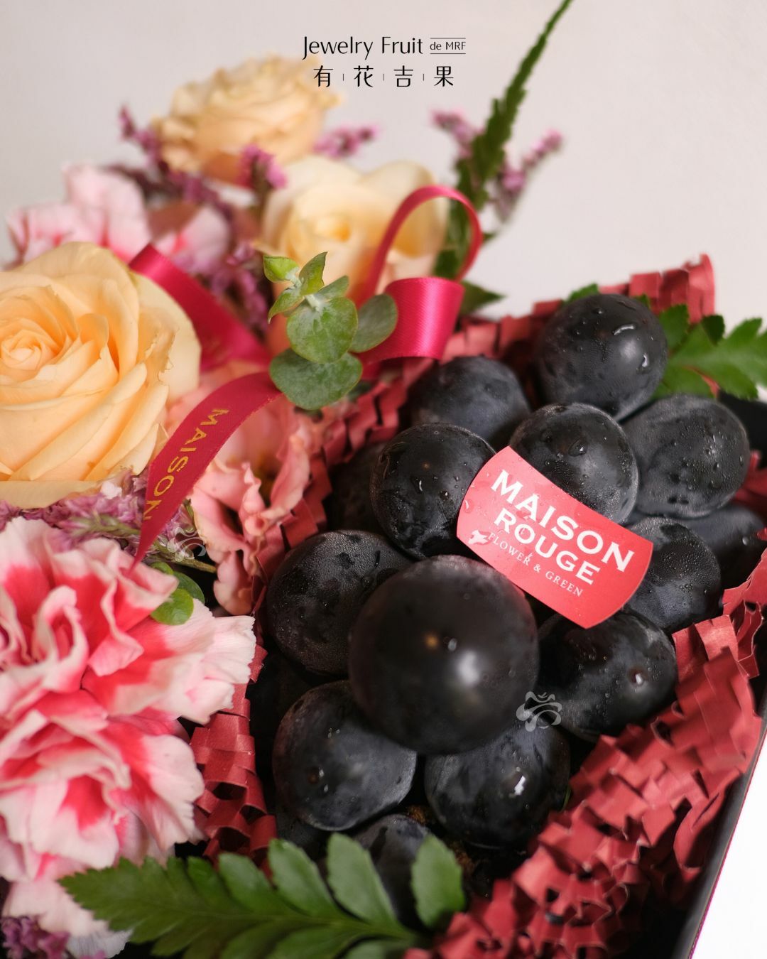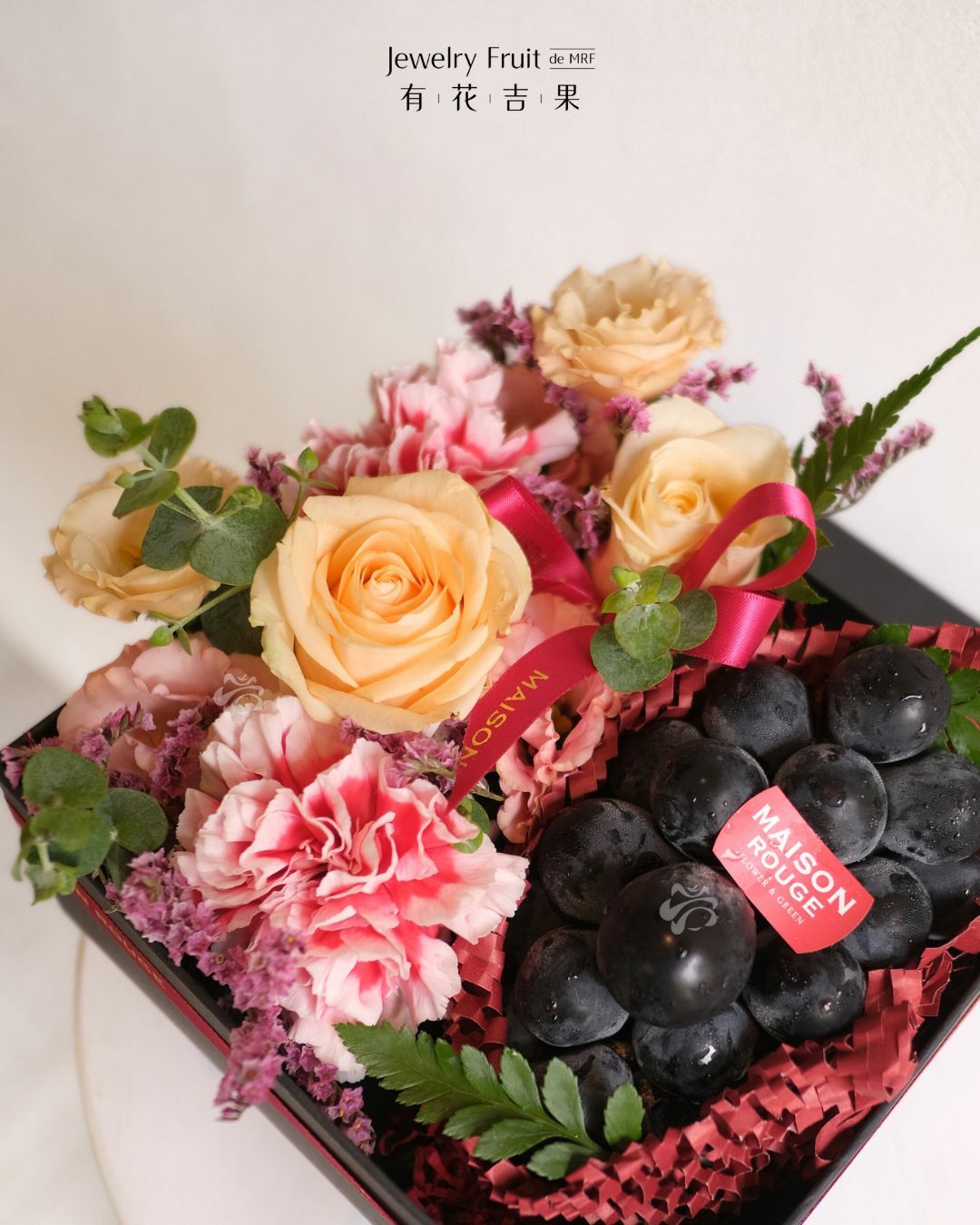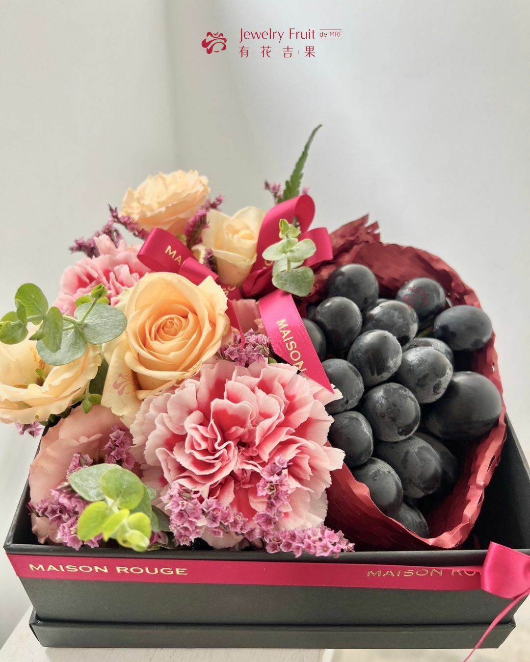 內容物:巨峰葡萄、季節性花材。