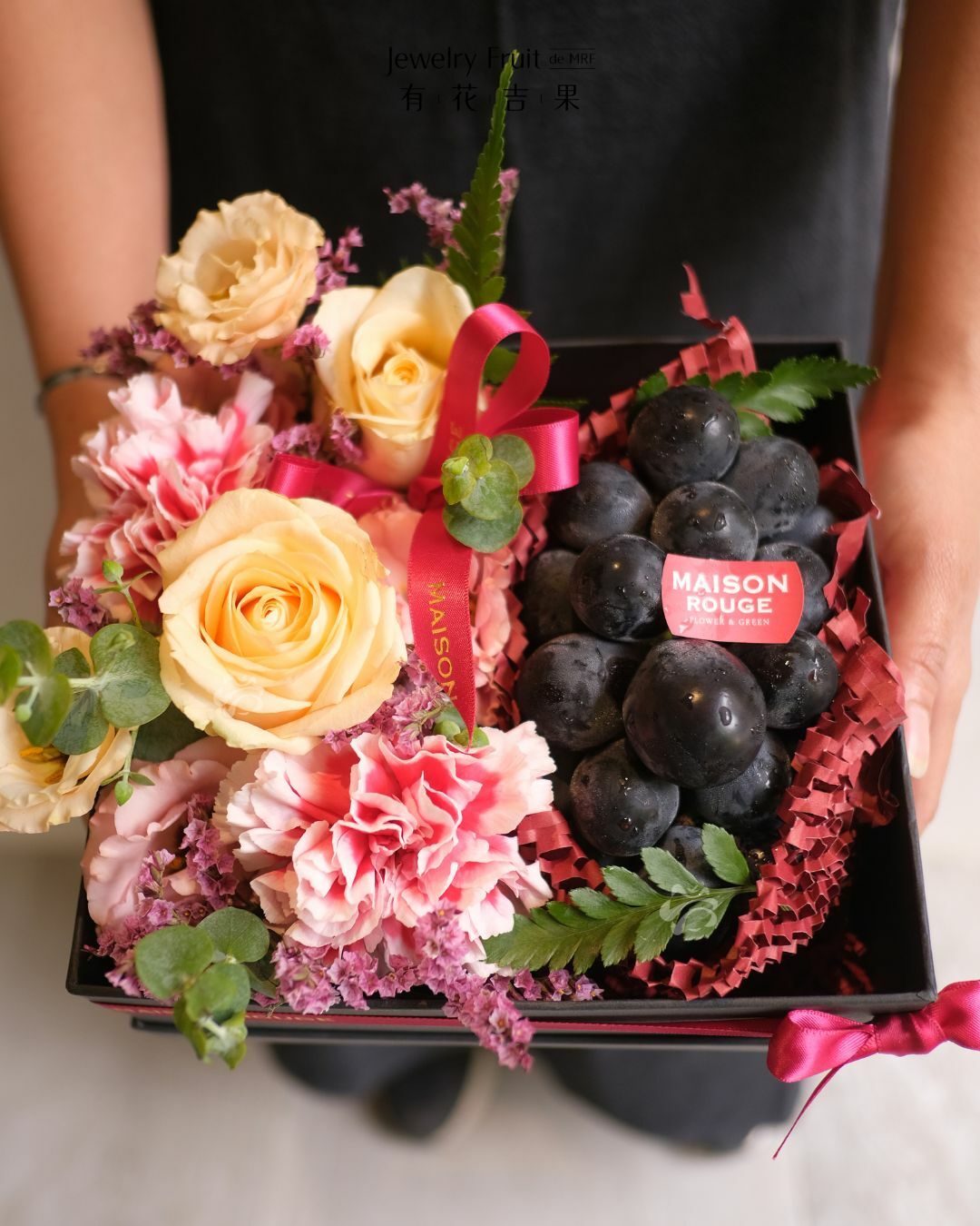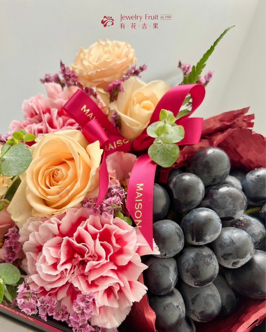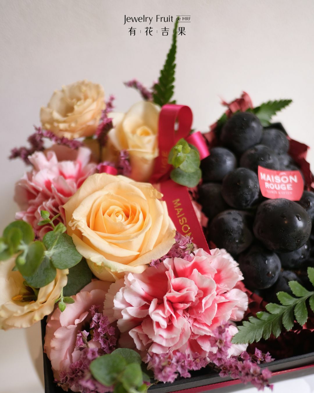 內容物:巨峰葡萄、季節性花材。