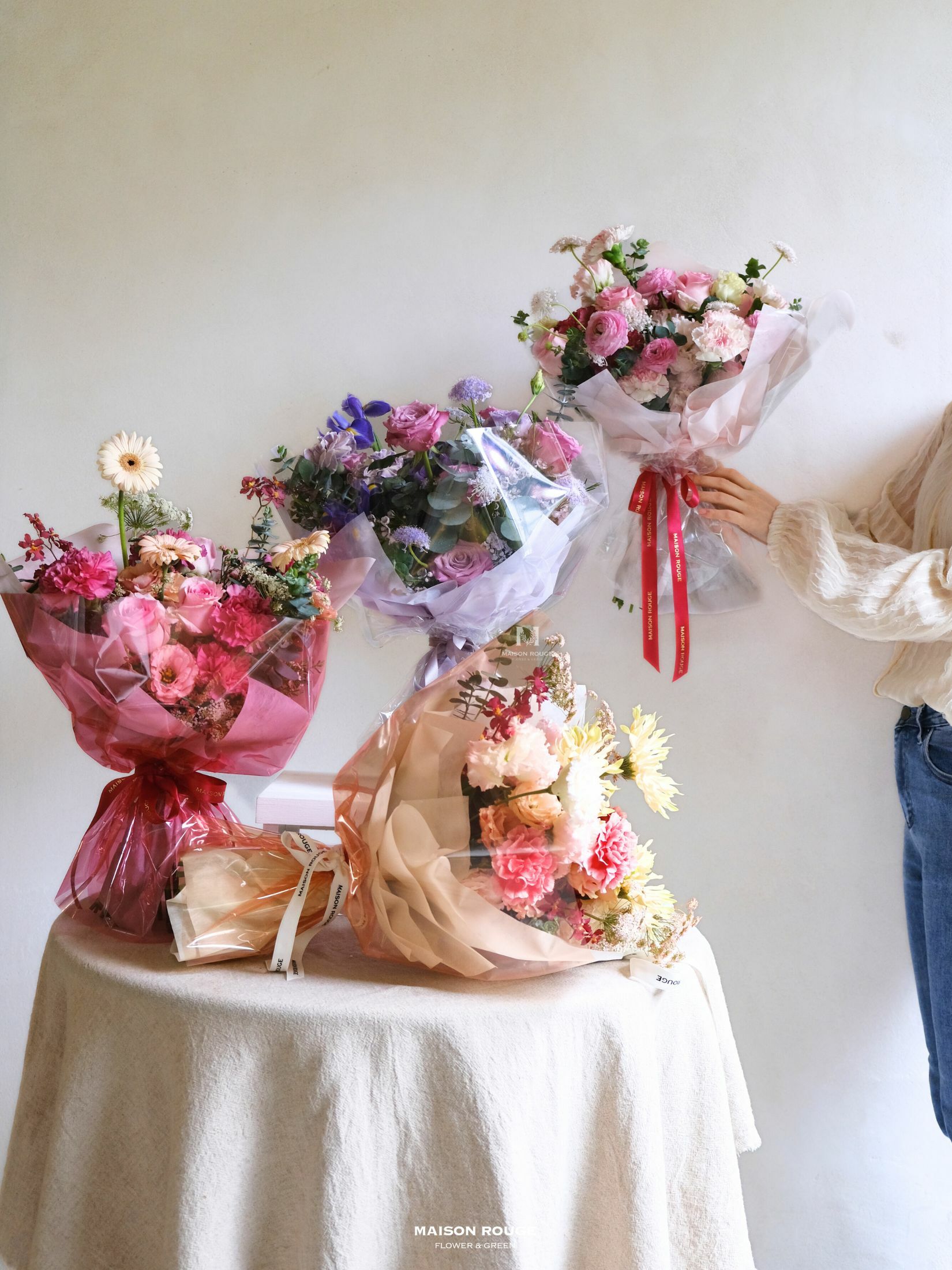 • 花禮皆為手工設計製作,每朵鮮花及植物都是不同的,每款都是獨一無二,無法做出與照片一模一樣,圖片僅供參考。