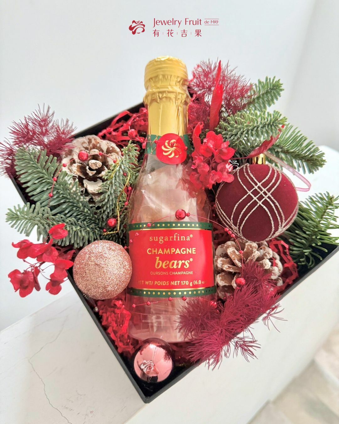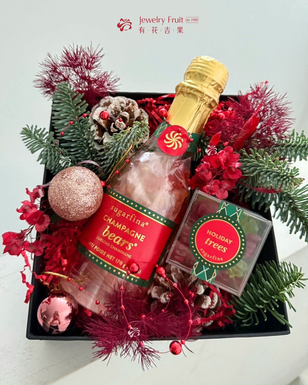香檳小熊造型軟糖的微醺風味加上時尚聖誕設計,是聖誕送禮、自用都推薦的禮盒組!
