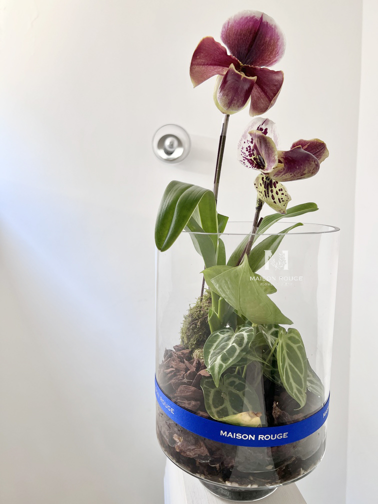 花材:拖鞋蘭、南美水晶花蠋(鮮花)